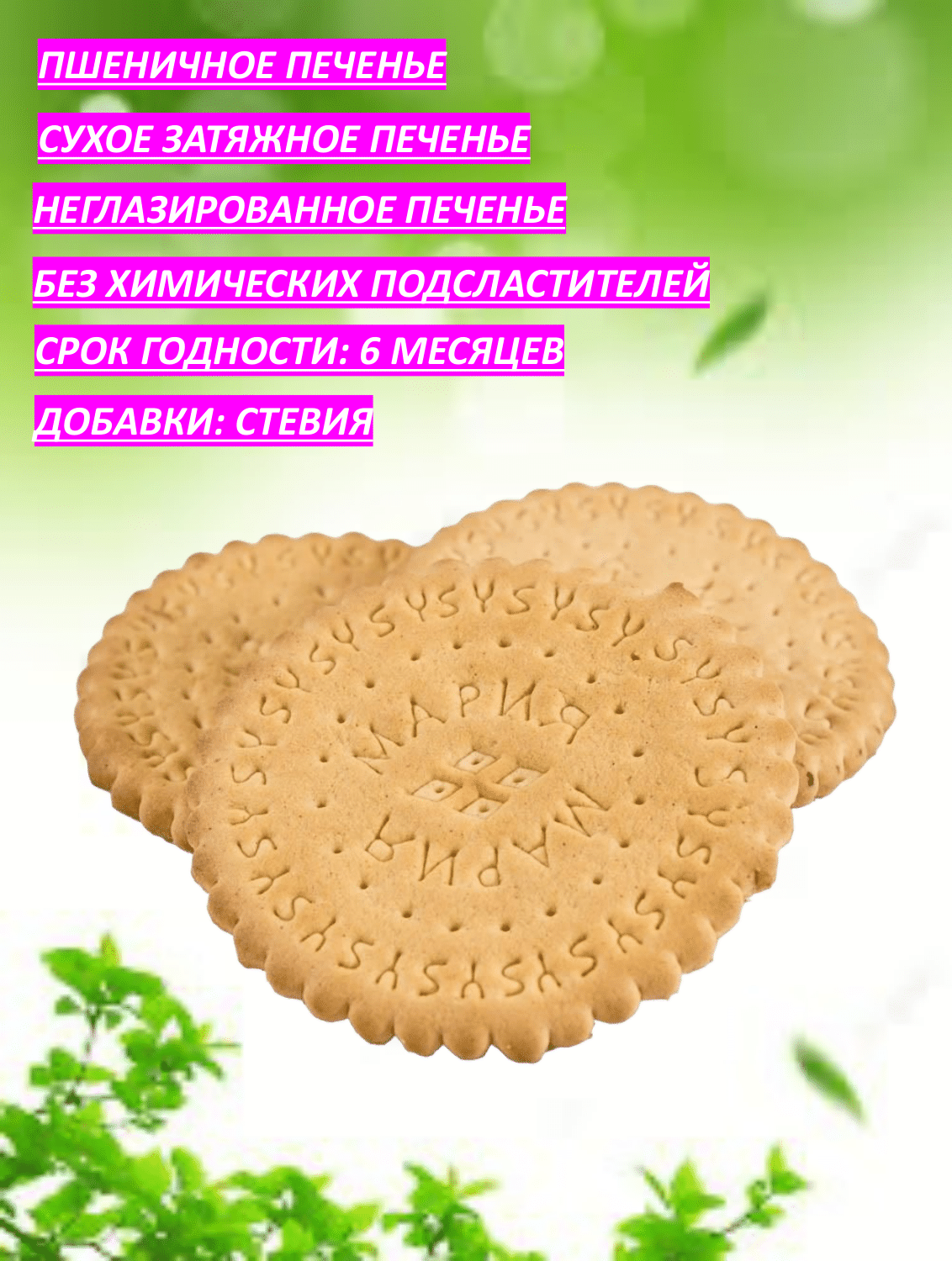 2 шт Печенье Затяжное Мария на Стевии Mini Calorie 250 гр информация: