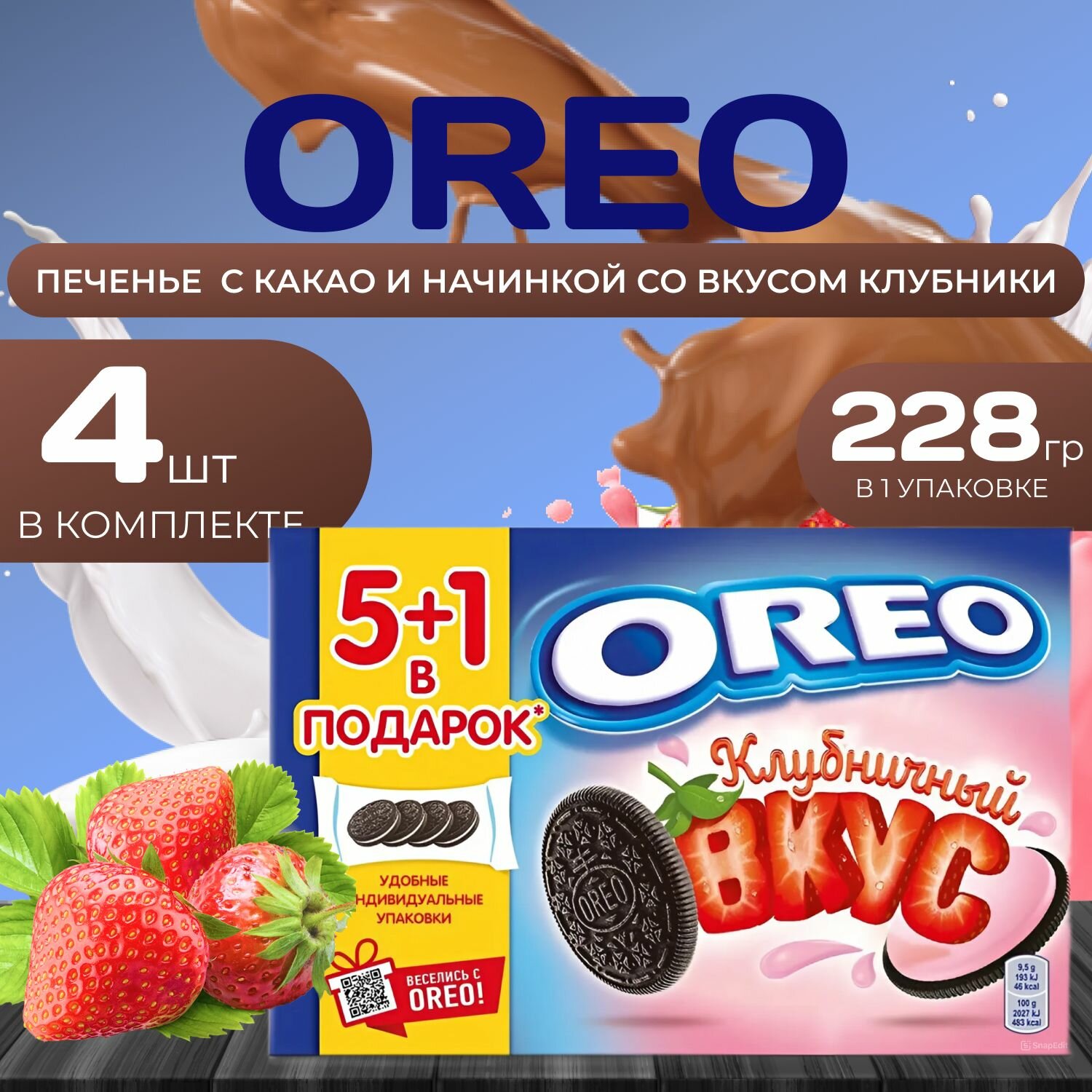 10 цен на Oreo Печенье с какао и начинкой со вкусом клубники (6 пакетиков) х 4 уп.