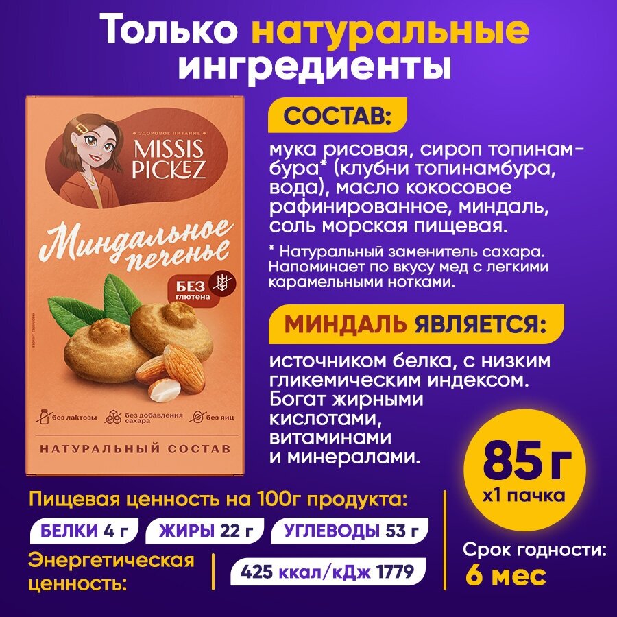 Missis Pickez Печенье Миндальное без добавления сахара и глютена, без лактозы Натуральное для детского питания Набор - 3 упаковки