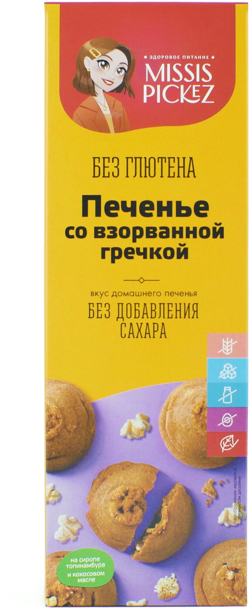 Печенье взорванная гречка без сахара без глютена "Missis Pickez" 12 пачек по 100 г информация: