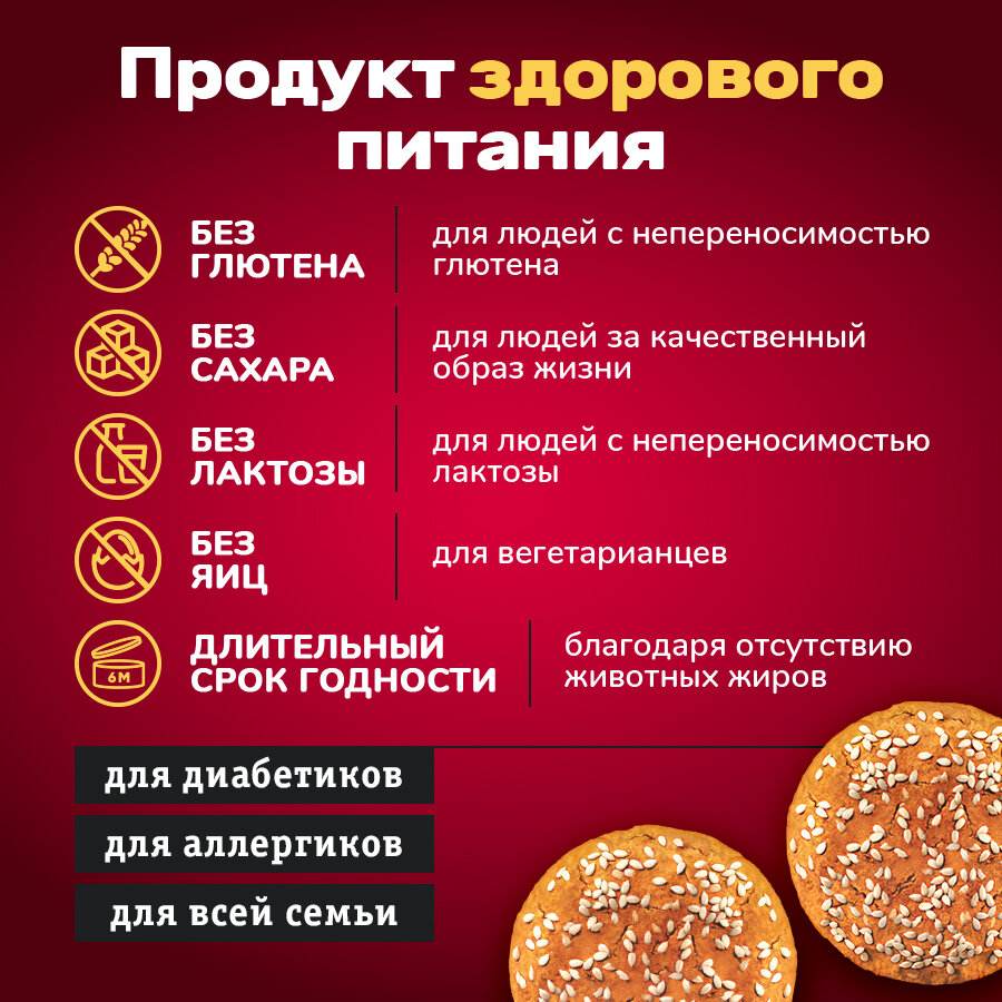 | Не содержит | ГМО / глютен / консерванты / красители / лактозу / пальмовое масло / сахар / яйца |