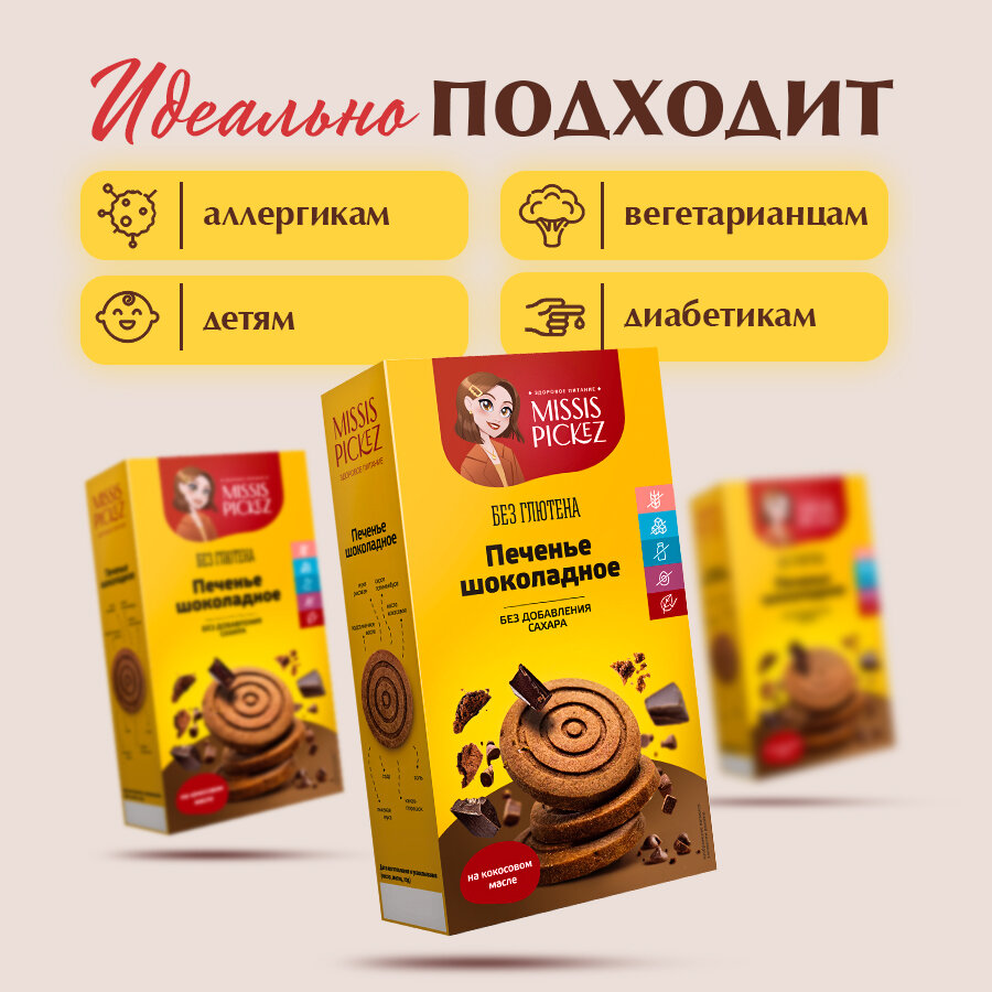 Печенье шоколадное без сахара без глютена "Missis Pickez" 5 пачек по 100 г 960 ₽