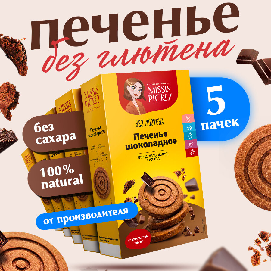 10 цен на Печенье шоколадное без сахара без глютена "Missis Pickez" 5 пачек по 100 г