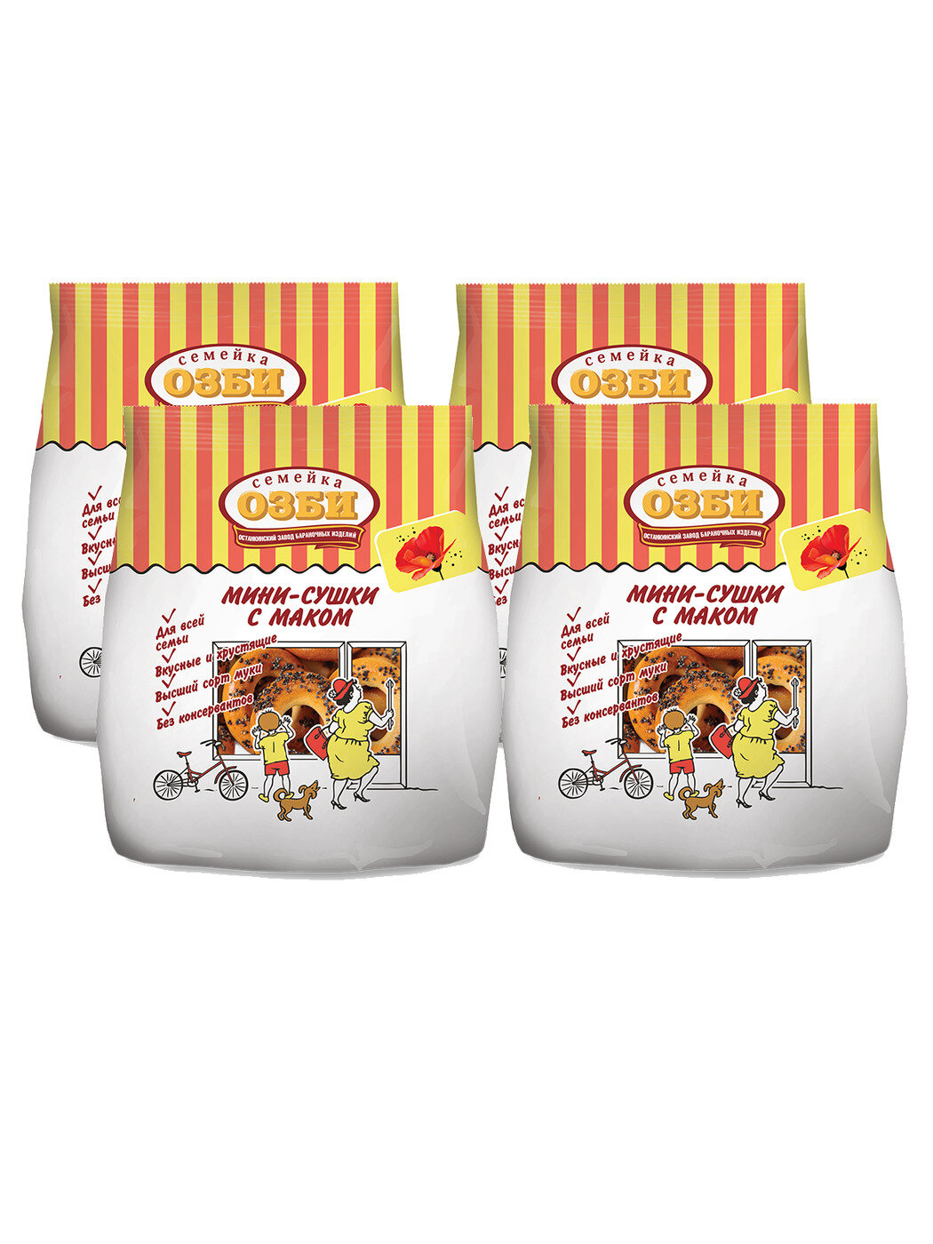 Мини-сушки с маком "Семейка озби", 4 пачки по 150 г информация: