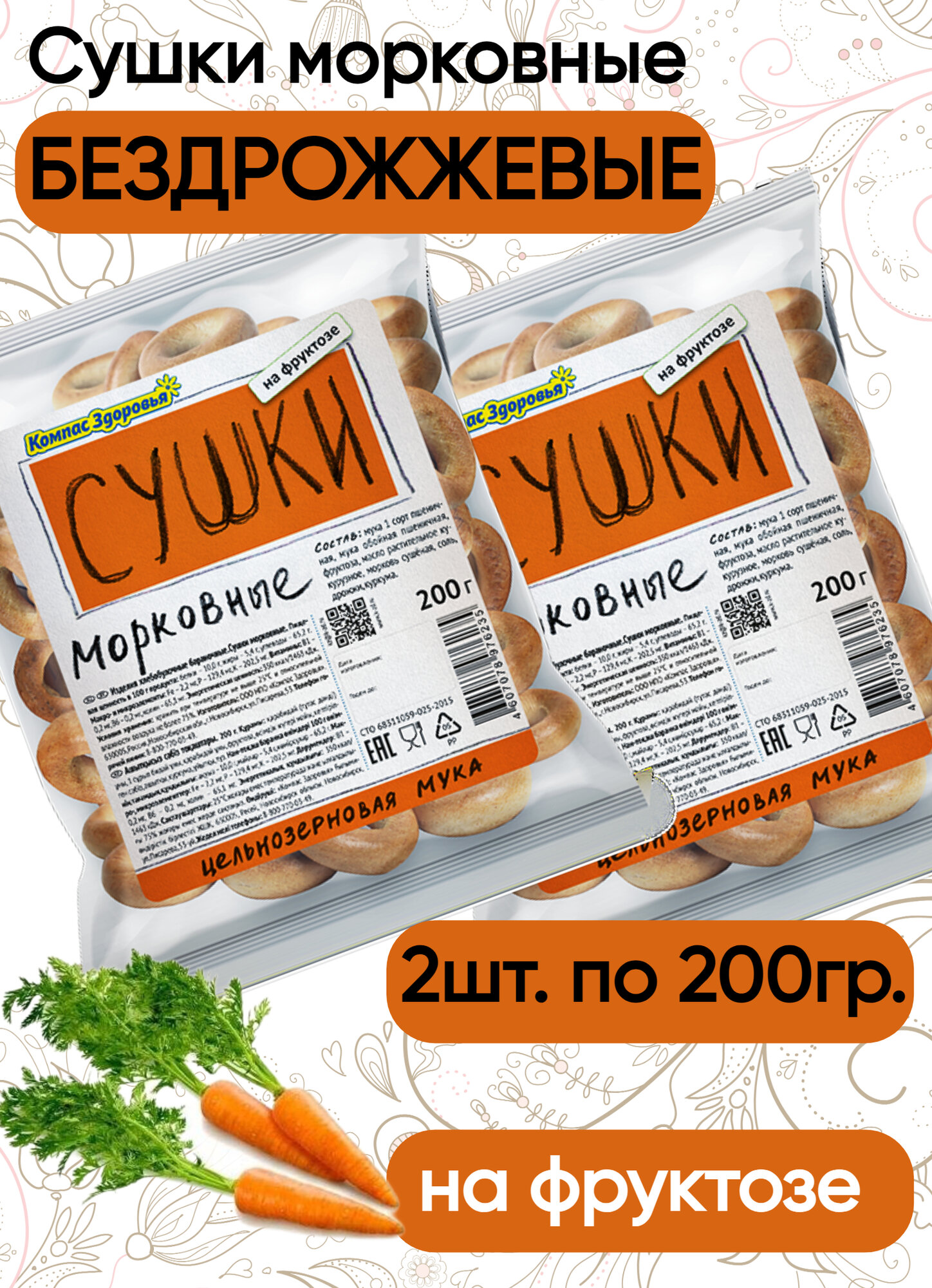 Сушки морковные 200 гр., 2 шт информация: