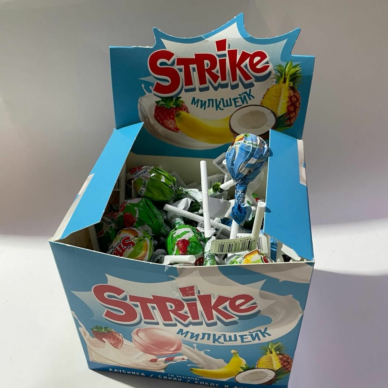 10 цен на Леденцы Strike Милкшейк карамель на палочке, 50шт
