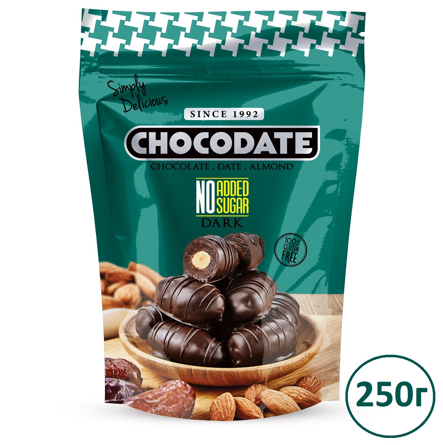 10 цен на Конфеты CHOCODATE финики с миндалем в бельгийском горьком шоколаде без сахара нетто 250г