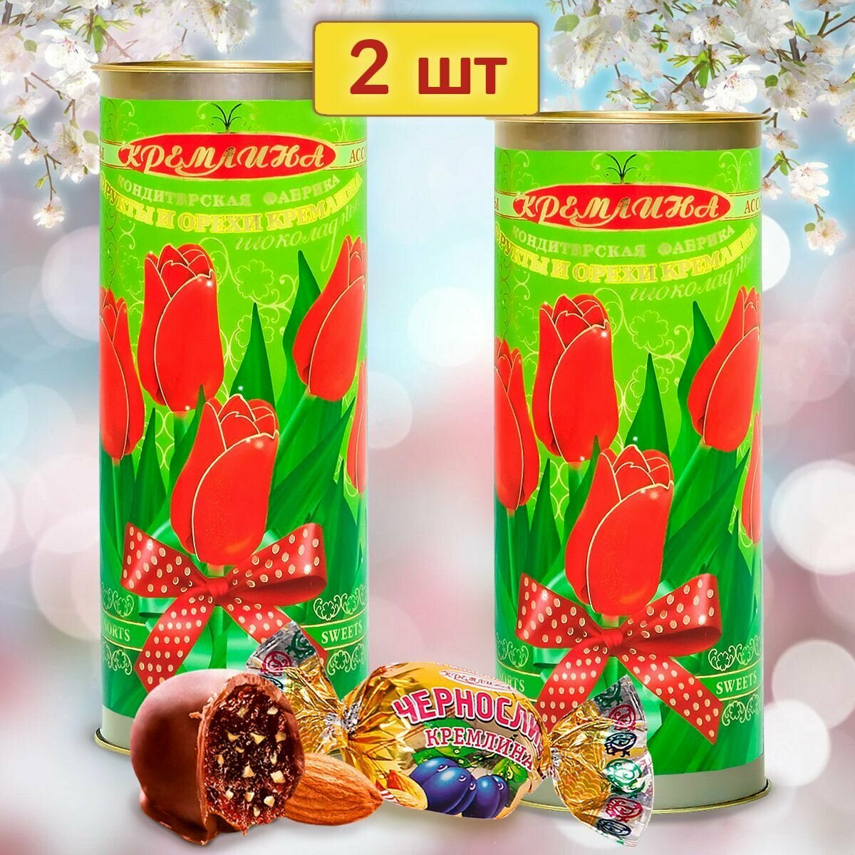 Подарок новогодний, набор конфет подарочных Чернослив шоколадный с грецким орехом в тубах "Москва Золотая" , спайка 2 тубы по 250 грамм 549 ₽