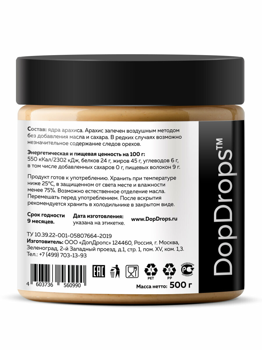 Арахисовая паста DopDrops хрустящая с кусочками арахиса 500 г информация: