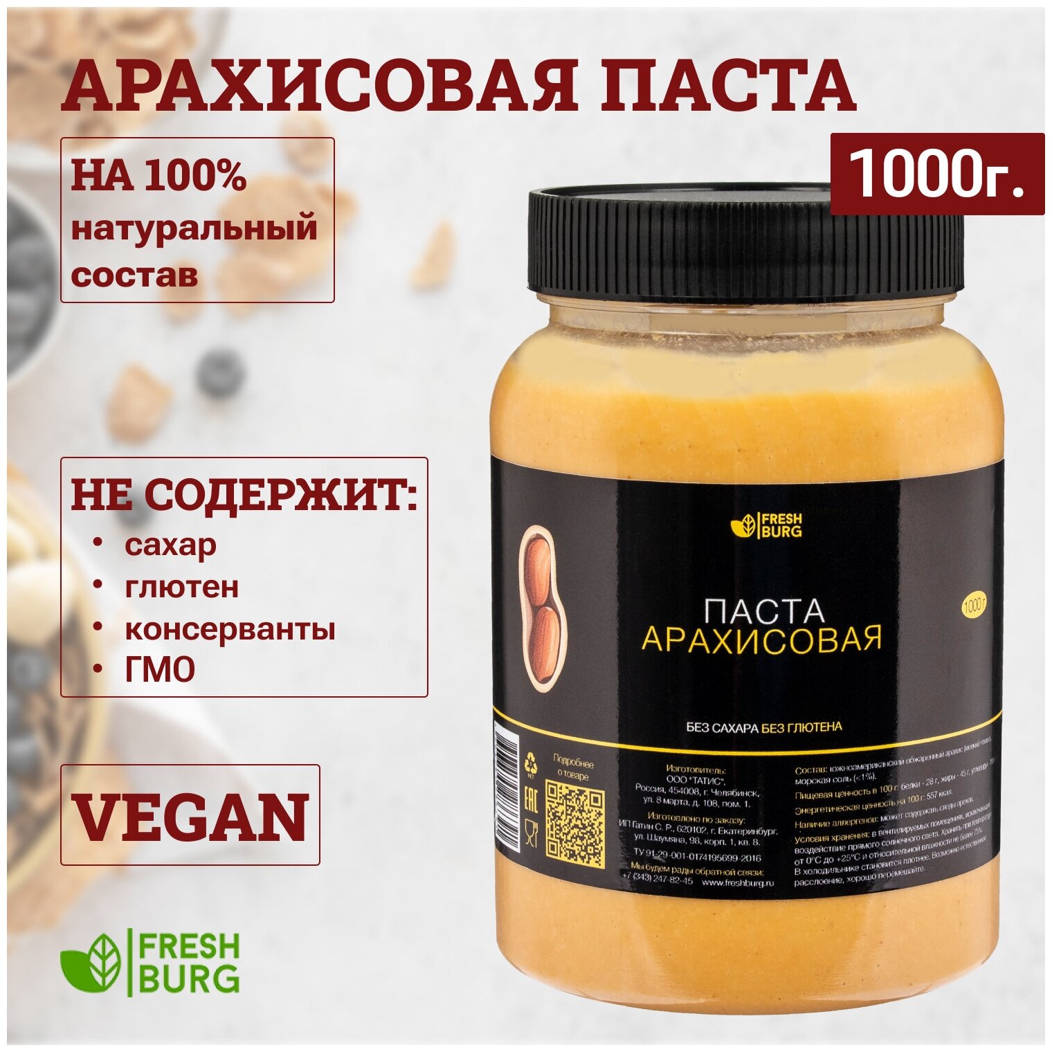 Паста арахисовая без сахара Freshburg 1 кг (1000 г) информация: