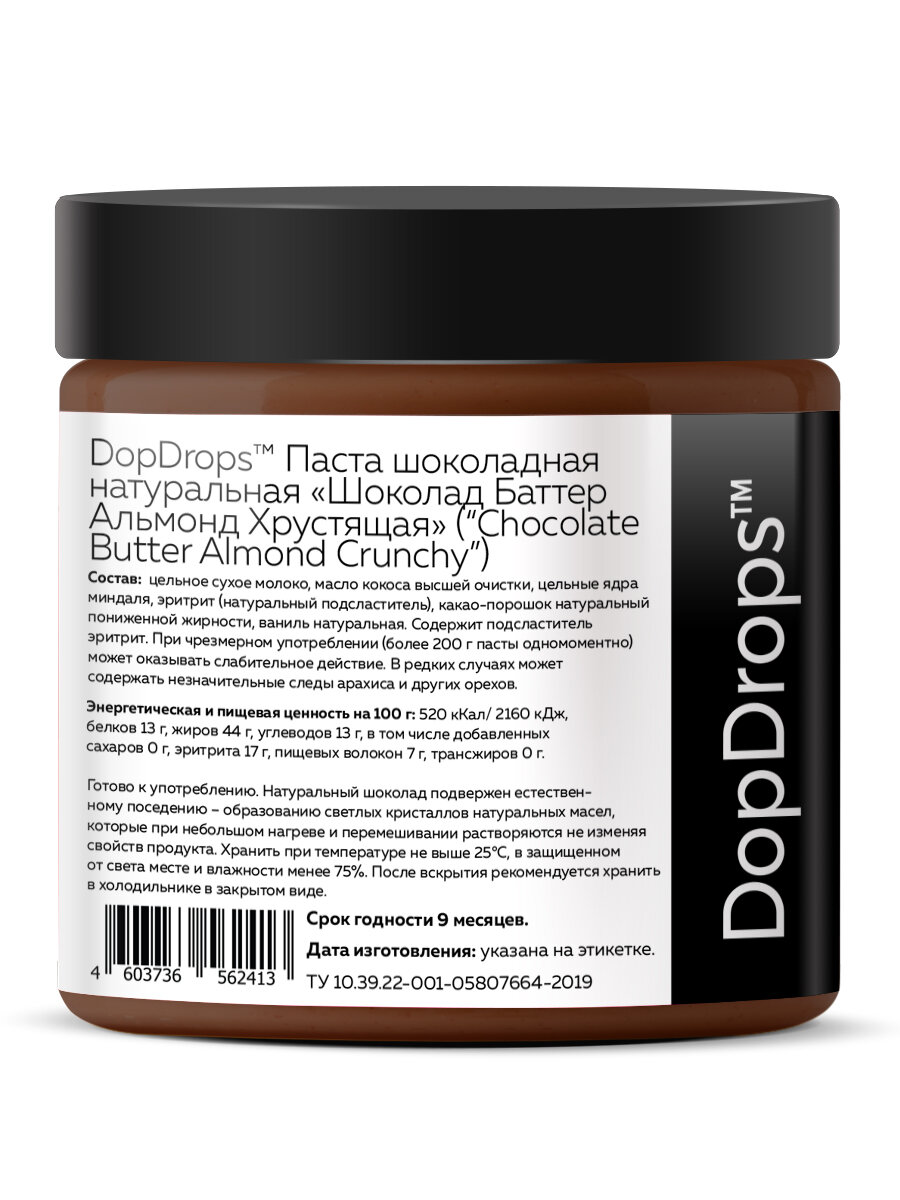 Шоколадная паста DopDrops с кусочками миндаля 500 г информация: