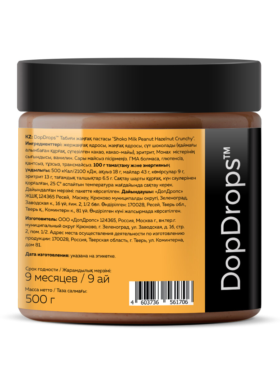 Шоколадная паста DopDrops хрустящая с кусочками фундука, 500 г информация: