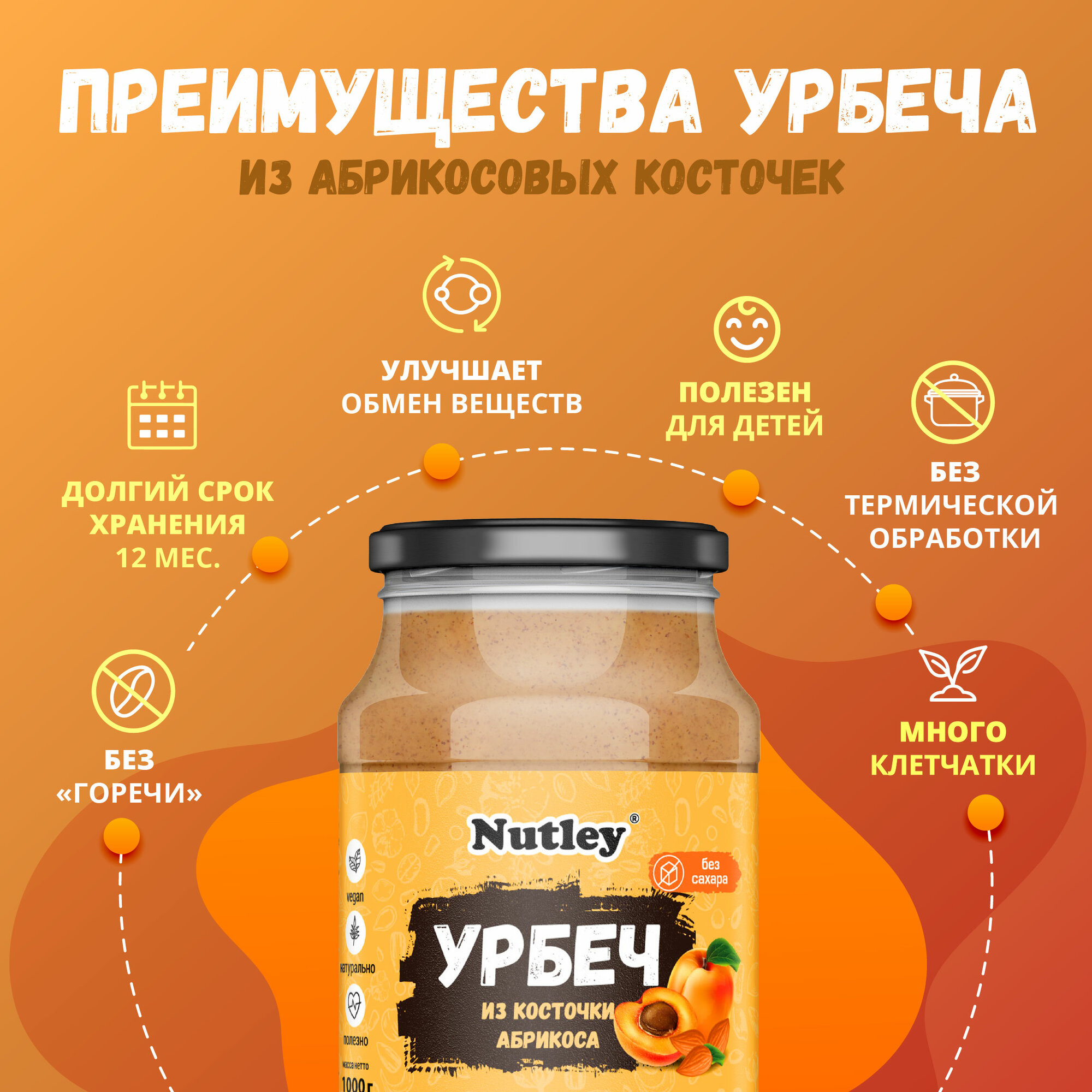 Урбеч Nutley из абрикосовой косточки, натуральный, без сахара (1000 г) информация: