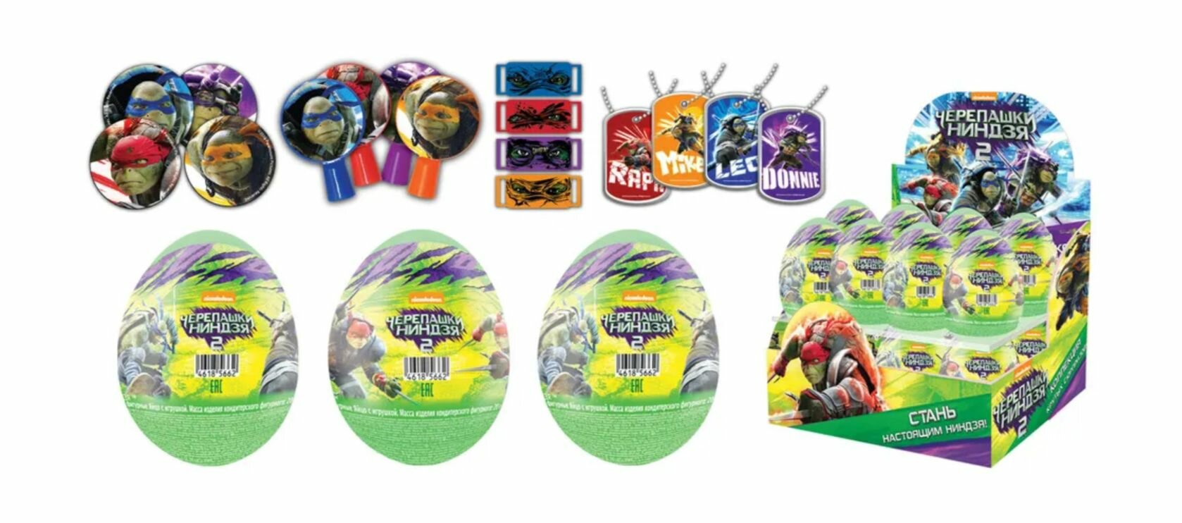 10 цен на MEGA SECRET Шоколадное яйцо Черепашки ниндзя с коллекционной игрушкой, 24 шт*20гр.