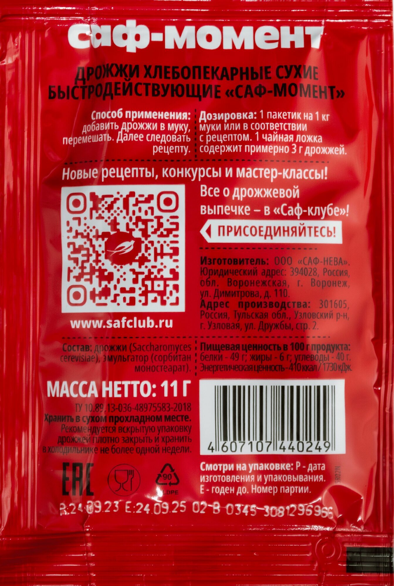 | Состав | дрожжи сухие инстантные |
