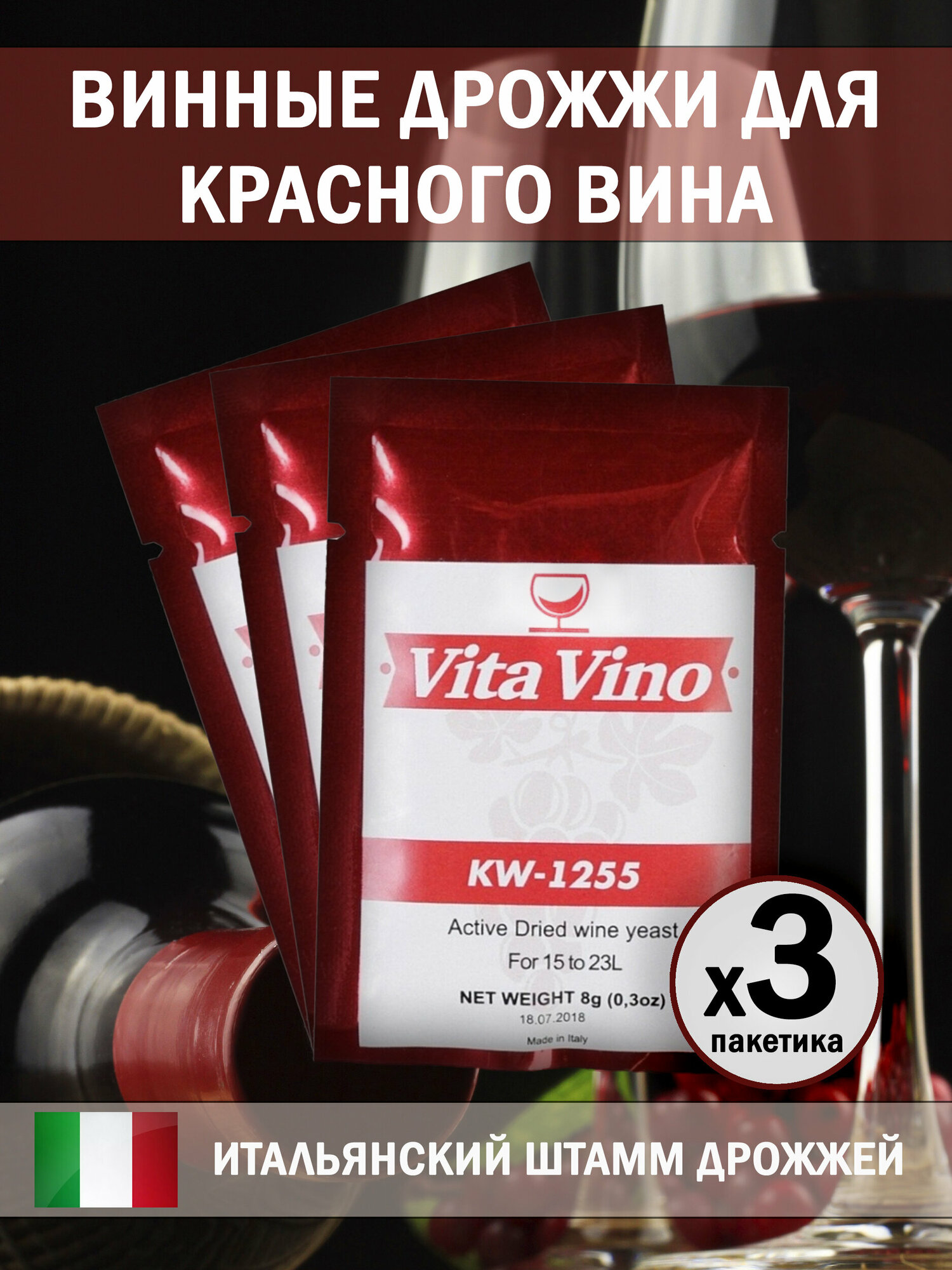 Дрожжи винные Vita Vino KW-1255, 8 г. Комплект 3 шт. информация: