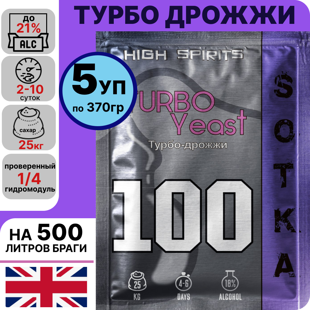 10 цен на Дрожжи спиртовые турбо High Spirits сотка 100L ( на 100 литров) 5 шт x 370гр
