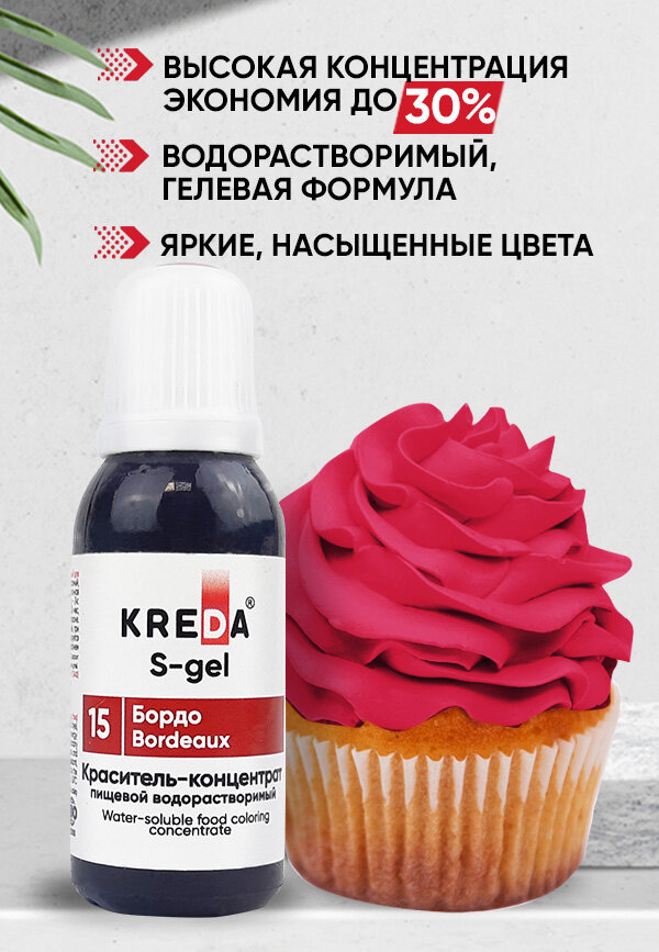10 цен на Пищевой краситель Kreda S-gel, бордо, 20мл, гелевый, водорастворимый