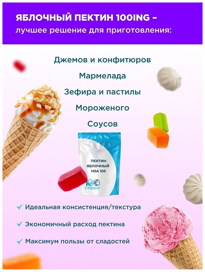 10 цен на Пектин яблочный HSA 105, натуральный, загуститель, 500 гр, стоинг / STOING