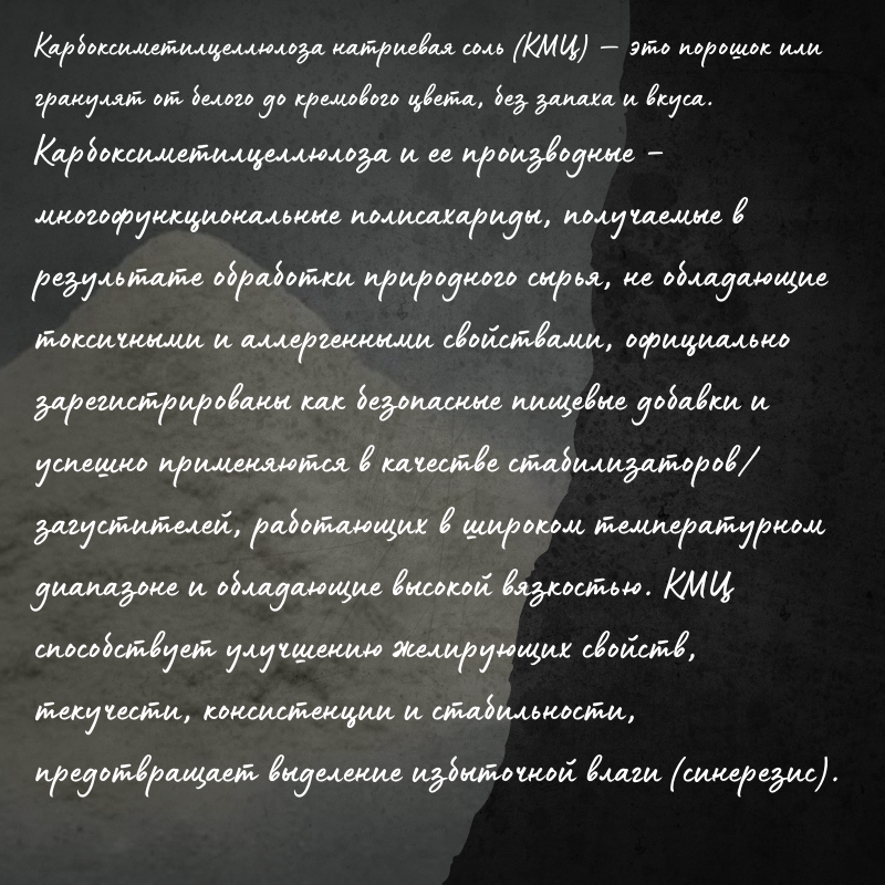 | Состав | Карбоксиметилцеллюлоза натриевая соль (КМЦ) Е 466 |