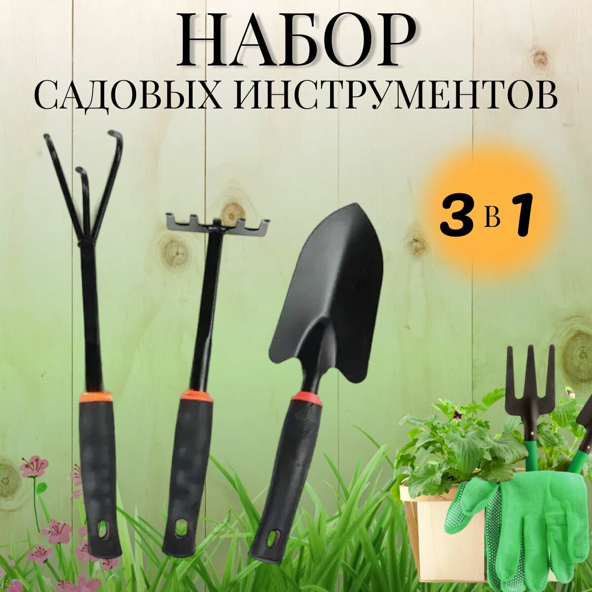 Набор садовых инструментов 3 предмета/ инструменты для сада и огорода информация: