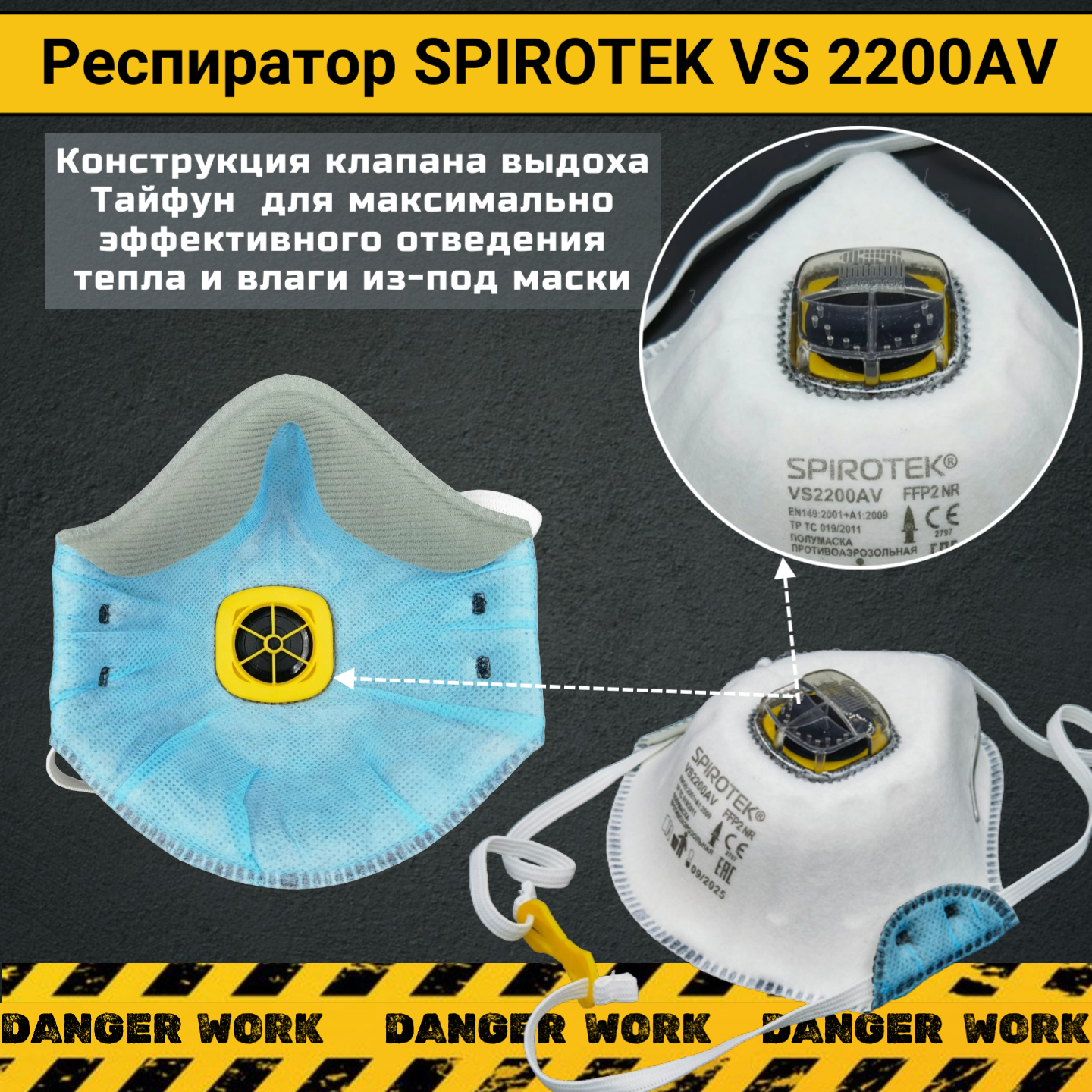 Респиратор - многоразовая маска Spirotek VS 2200 AV c клапаном FFP2, защита при сварочных работах, 100 шт 33 000 ₽