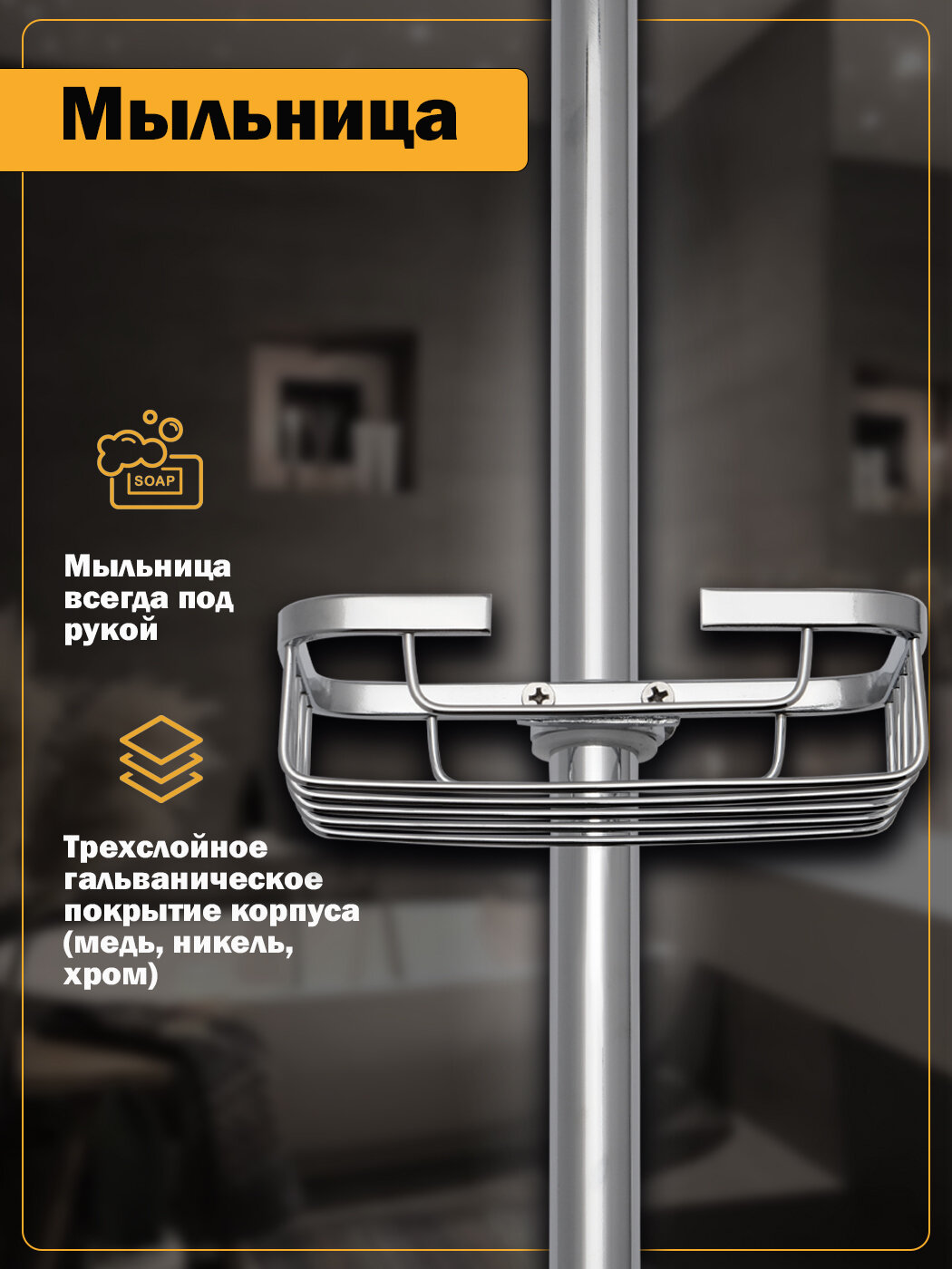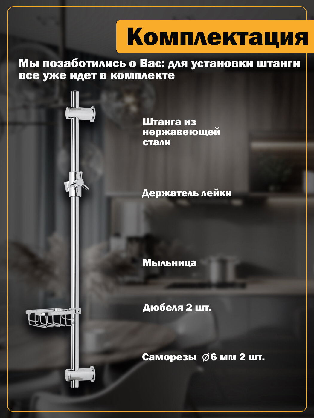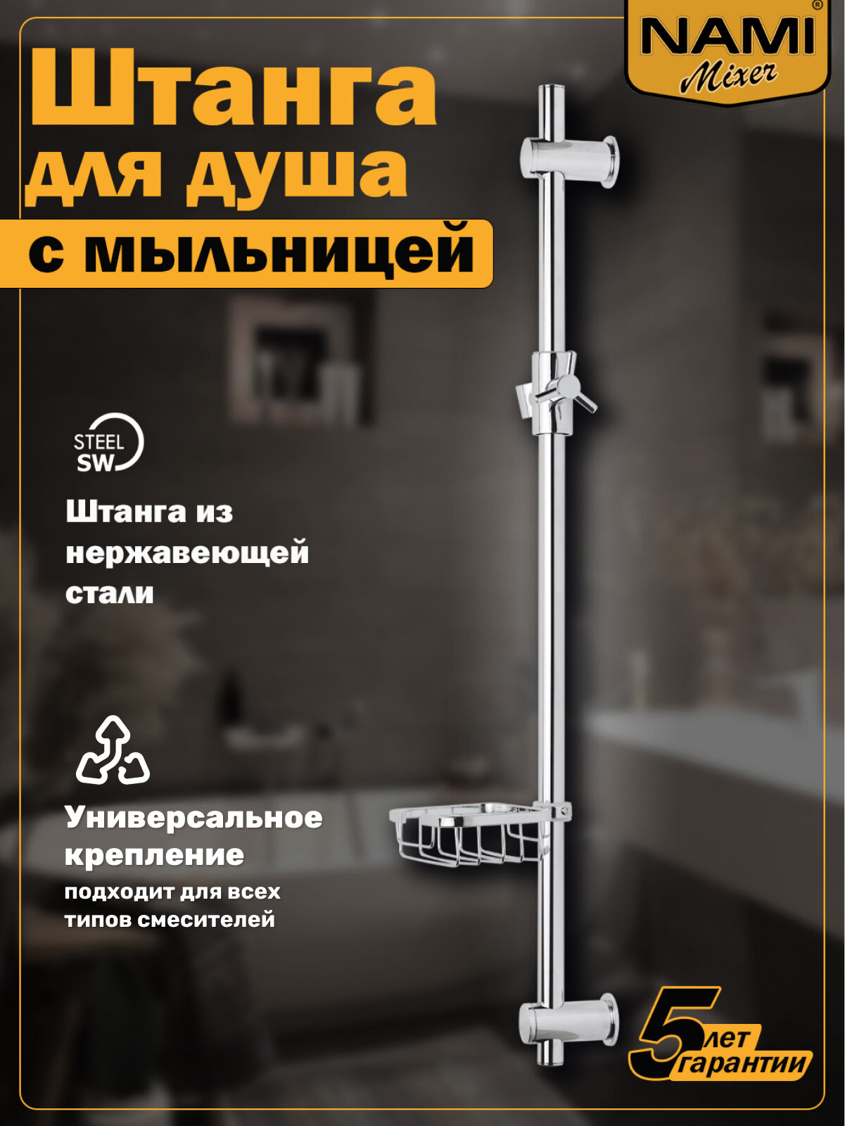 10 цен на Универсальная стойка для душа с мыльницей в современном силе из нержавеющей стали бренда PETAN, длина штанги 70 см.