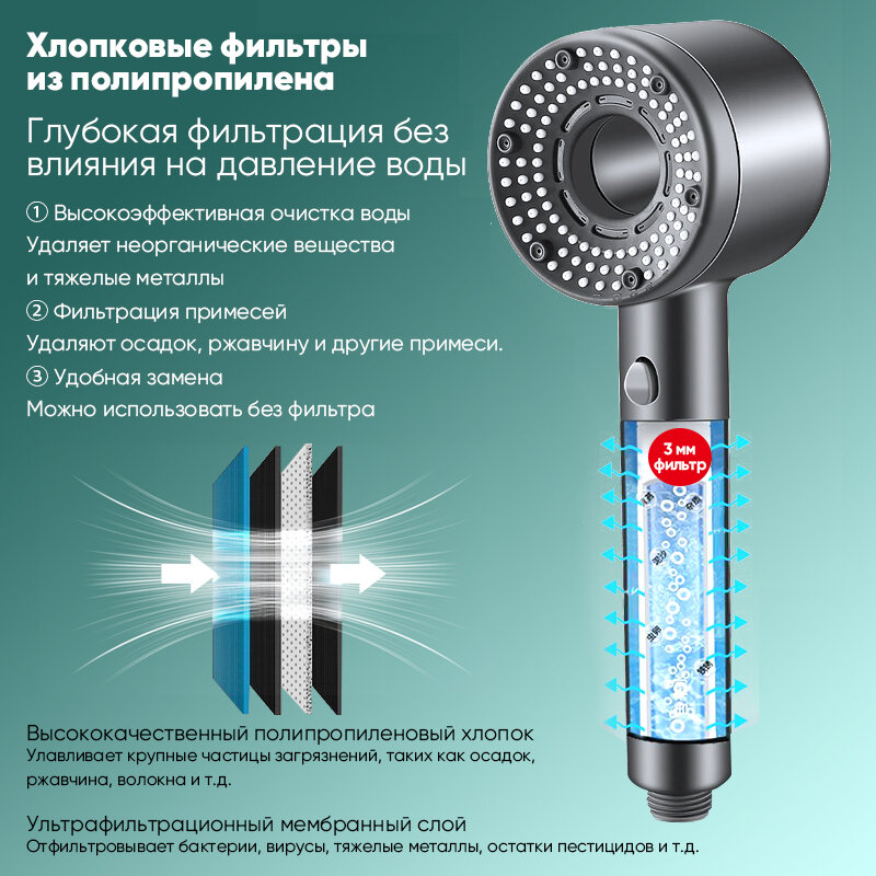Отзывы на Водосберегающая насадка для душа, Душевая лейка, лейка для душа с фильтром, Насадка на душ массажная регулируемая с кнопкой остановки подачи воды