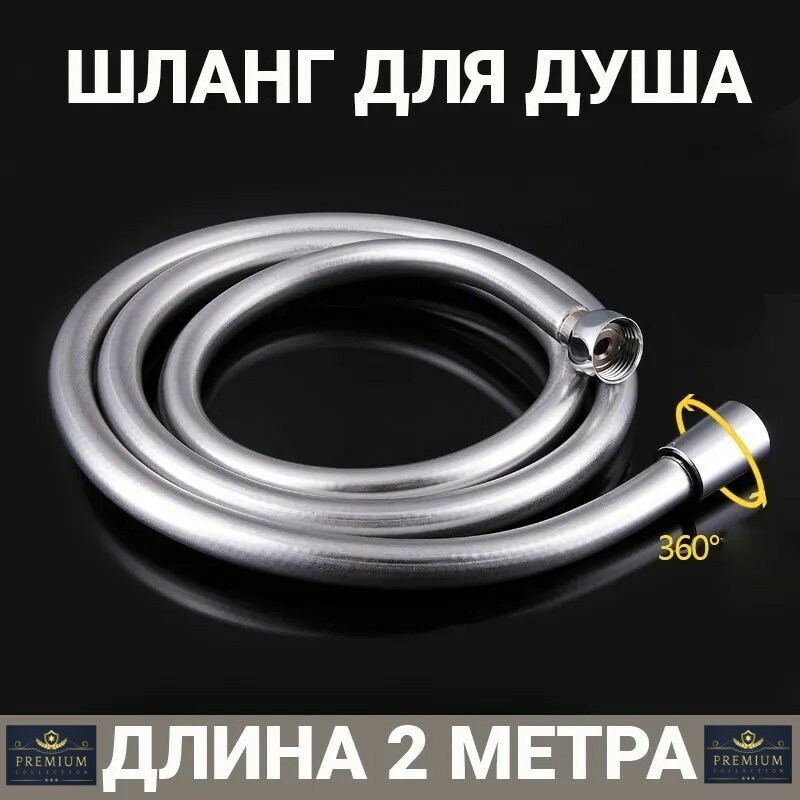 Шланг для душа серебристый, устойчивый к изломам, силиконовый, медная гайка, 1/2",длина 2 метра информация:
