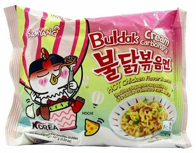 Лапша быстрого приготовления Hot Chicken острая курица и крем карбонара Samyang, пачка 140 гр х 5 шт. информация: