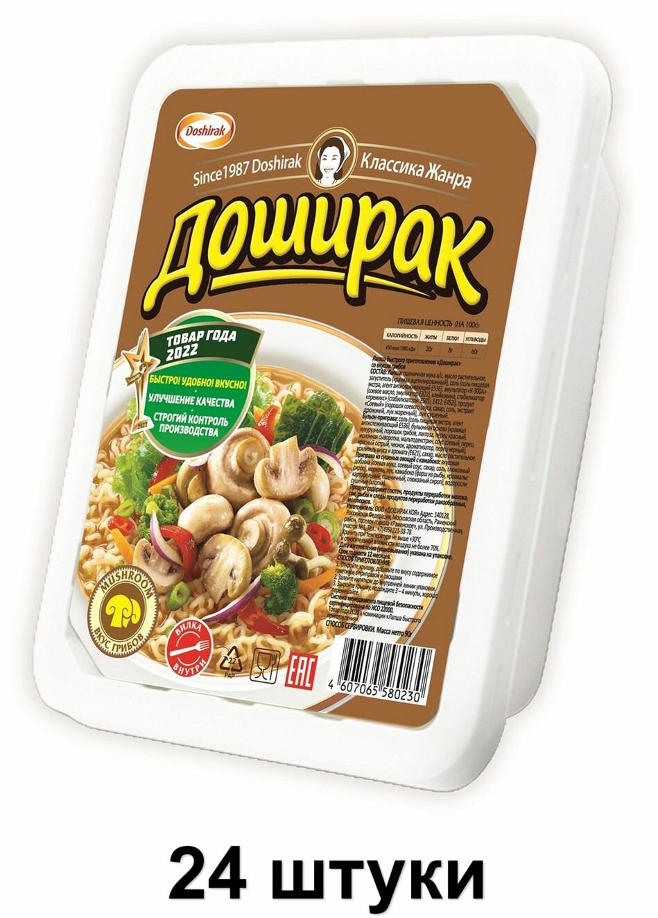 Лапша быстрого приготовления Доширак "Грибы", в лотке 90 г, 24 шт. информация: