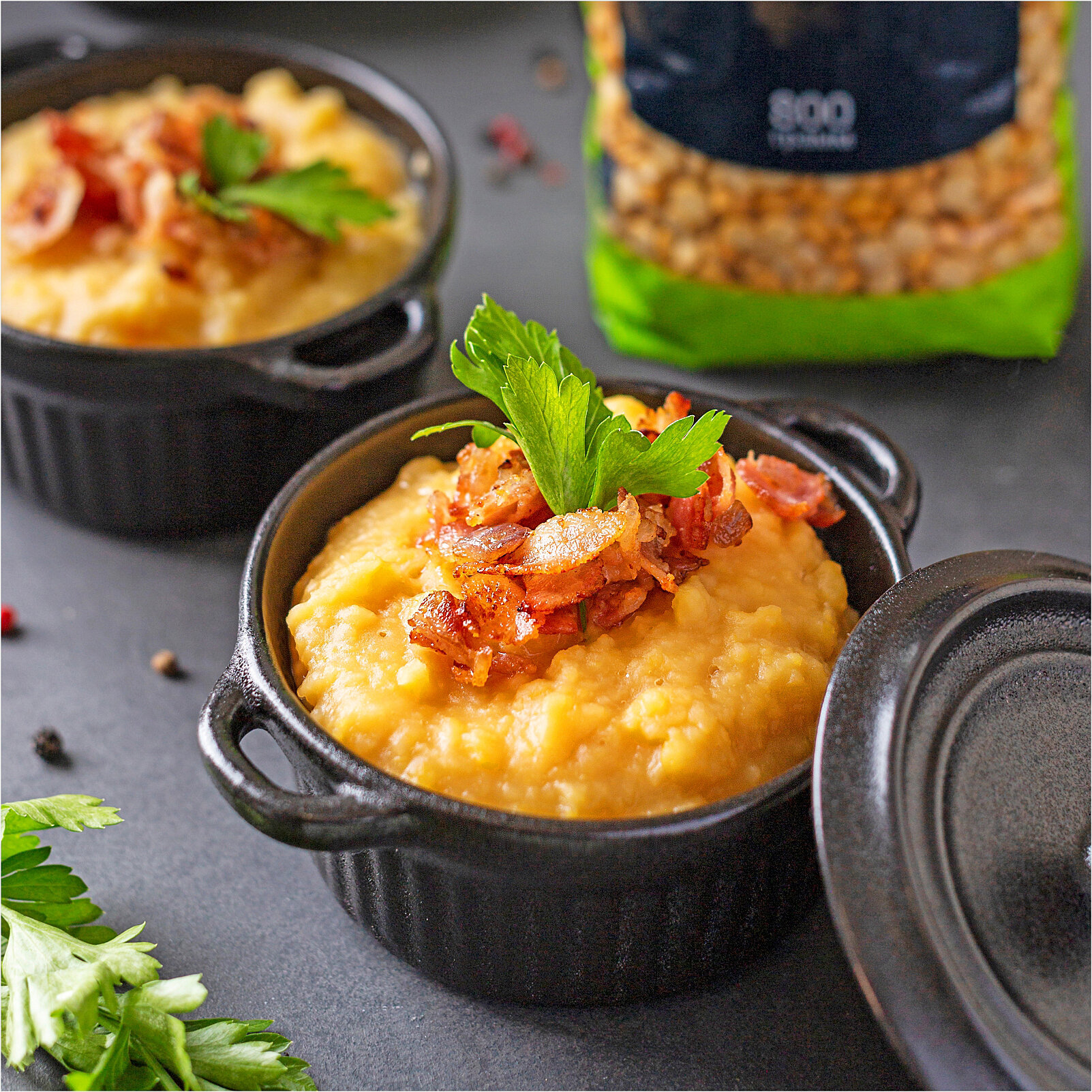 | Способ приготовления | Горох не требует замачивания. После замачивания горох теряет свойство развариваемости. Поместить промытый горох в кастрюлю в соотношении 1:3,5. Довести до кипения и варить 50-55 минут на медленном огне. Солить по вкусу за 5-7 минут до окончания варки |
