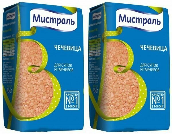 Мистраль чечевица красная для супов и гарниров колотая 450гр - 2 штуки информация: