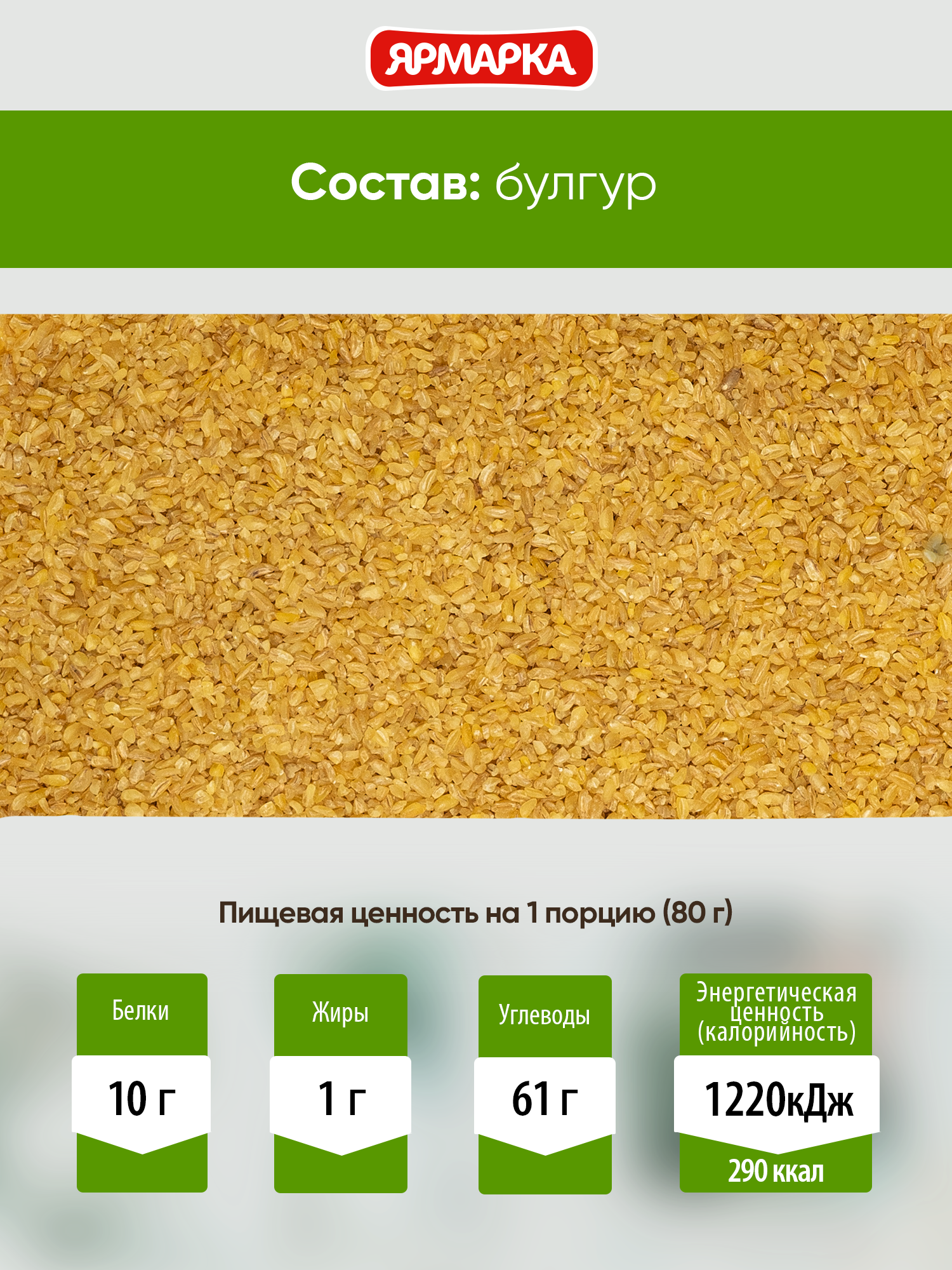 Ярмарка Булгур крупа из пшеницы в варочных пакетах, 5 пакетов, 400 г информация: