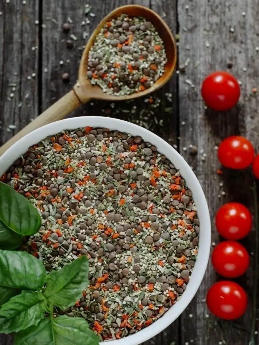 | Состав | Чечевица продовольственная, красная необрушенная (нешлифованная), киноа светлое, морковь сушеная, лук репчатый сушеный, лук порей сушеный. |