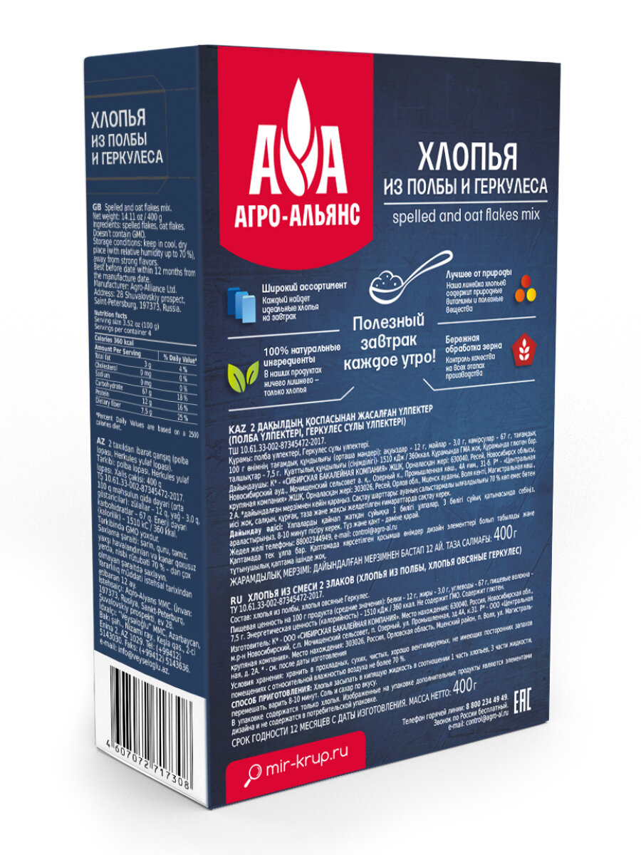 Хлопья Агро-Альянс из полбы и геркулеса информация: