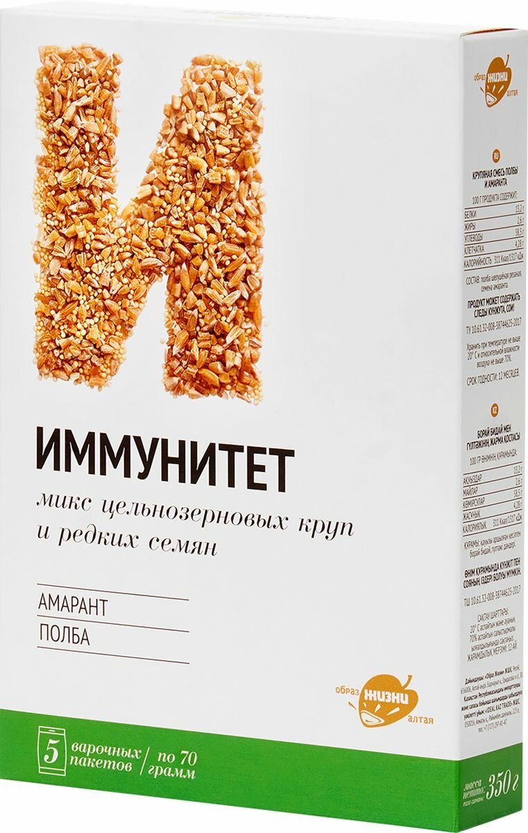 Смесь круп Иммунитет (полба, амарант) в варочных пакетах Образ жизни 350 гр информация: