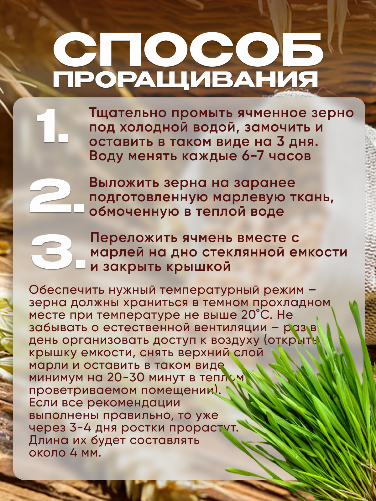 Ячмень для проращивания 1 кг, для заваривания, для настоев информация:
