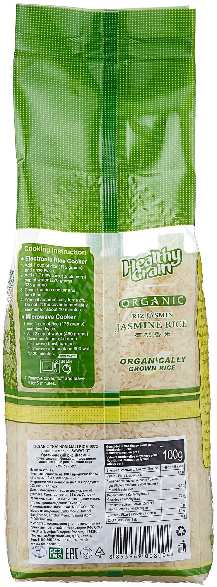 Жасминовый рис белый тайский органический (jasmine rice) Aroy-D | Арой-Ди 1кг информация: