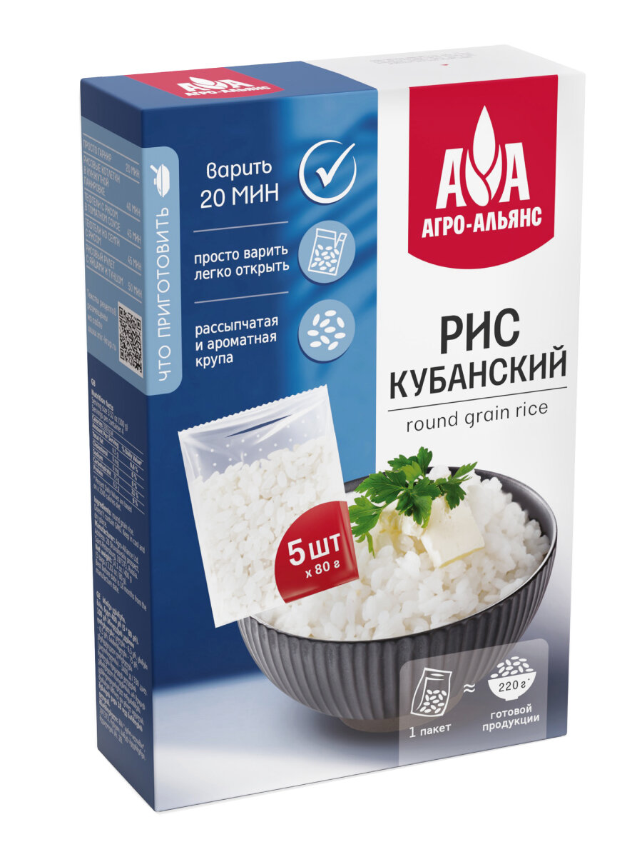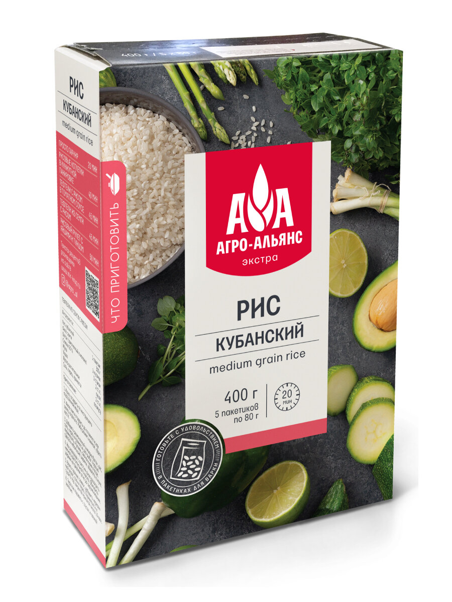 Рис кубанский Агро-Альянс Экстра в пакетиках для варки 400г (5*80г) информация: