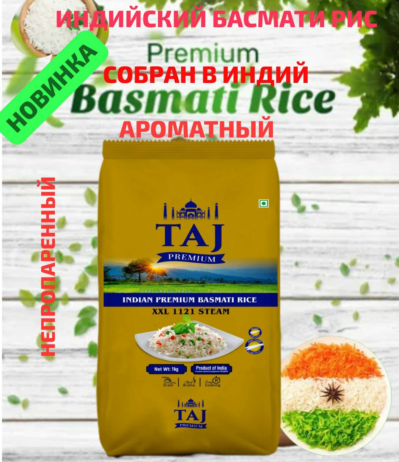 Отзывы на Рис Басмати TAJ (1x5) 5 кг непропаренный длиннозерный индийский