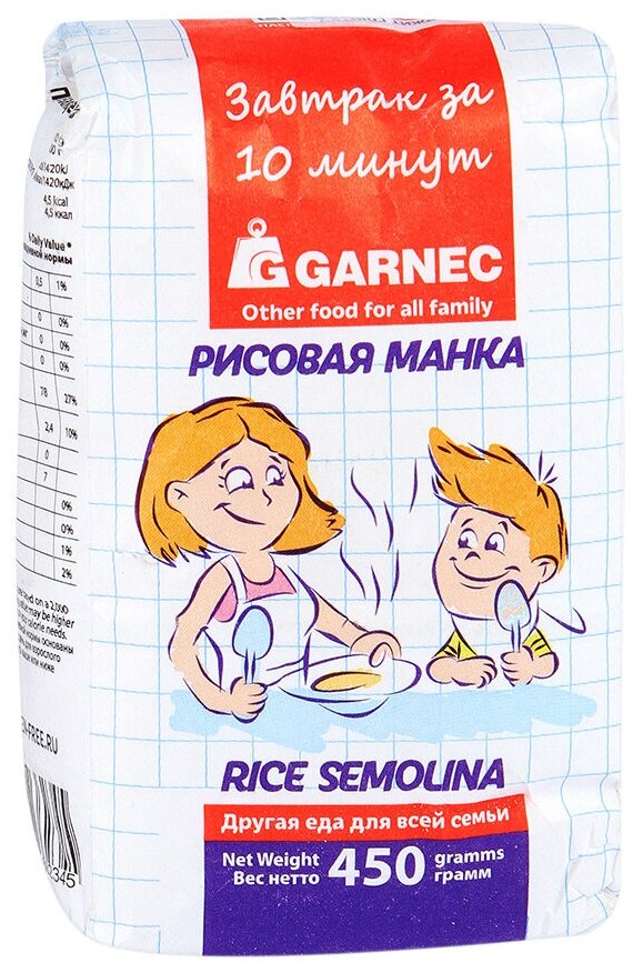 10 цен на Крупка "Рисовая манка" 2 шт по 450 г без глютена Garnec
