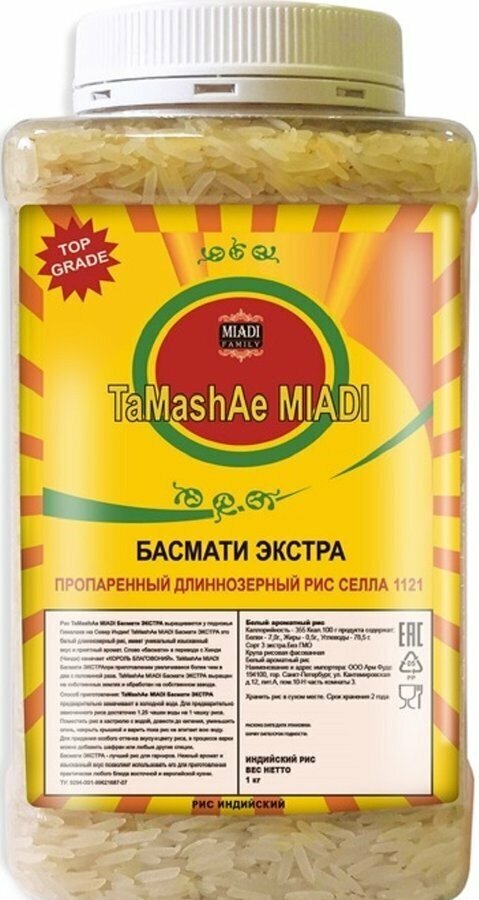 Рис басмати TaMashAe MIADI PREMIUM пропаренный, 1кг информация: