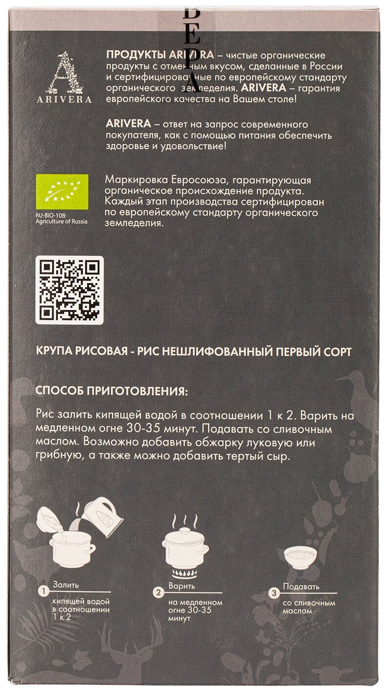 Аривера Крупа рисовая БИО- рис нешлифованный первый сорт 500 г, информация: