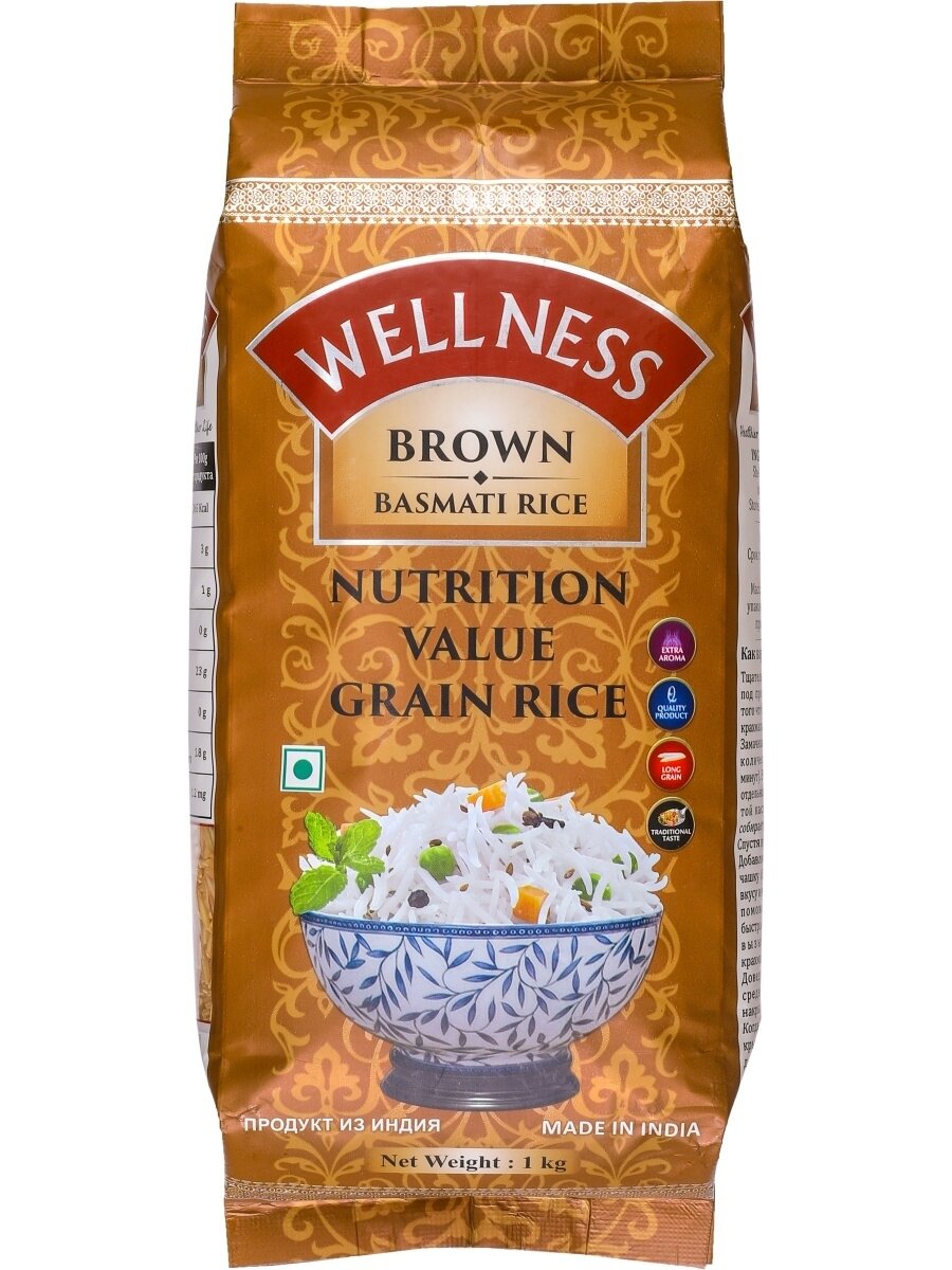 Рис басмати Bharat Bazaar коричневый (Rice Basmati Brown Wellness), 1 кг информация: