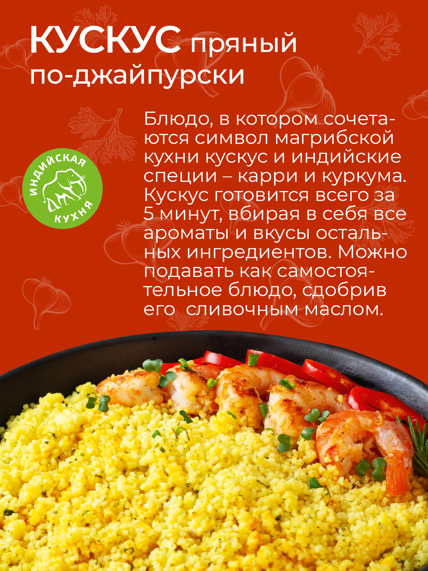 | Состав | кускус, чеснок, петрушка, карри (содержит горчицу), куркума. |