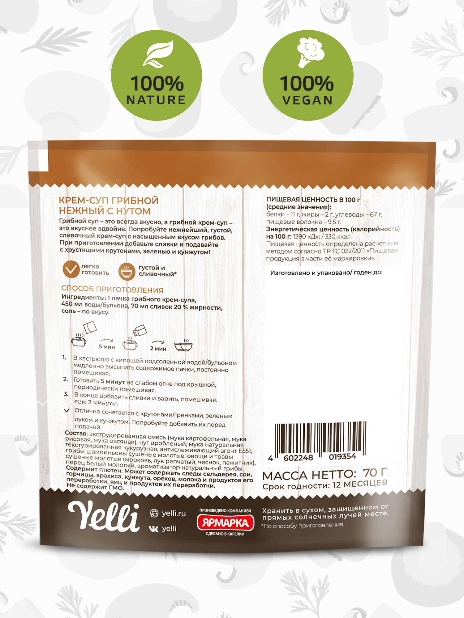 Крем-суп грибной нежный с нутом Yelli 70 г информация: