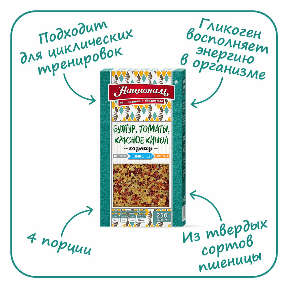 Смесь для гарнира националь Гликоген, булгур, томаты, красное киноа, 250г информация: