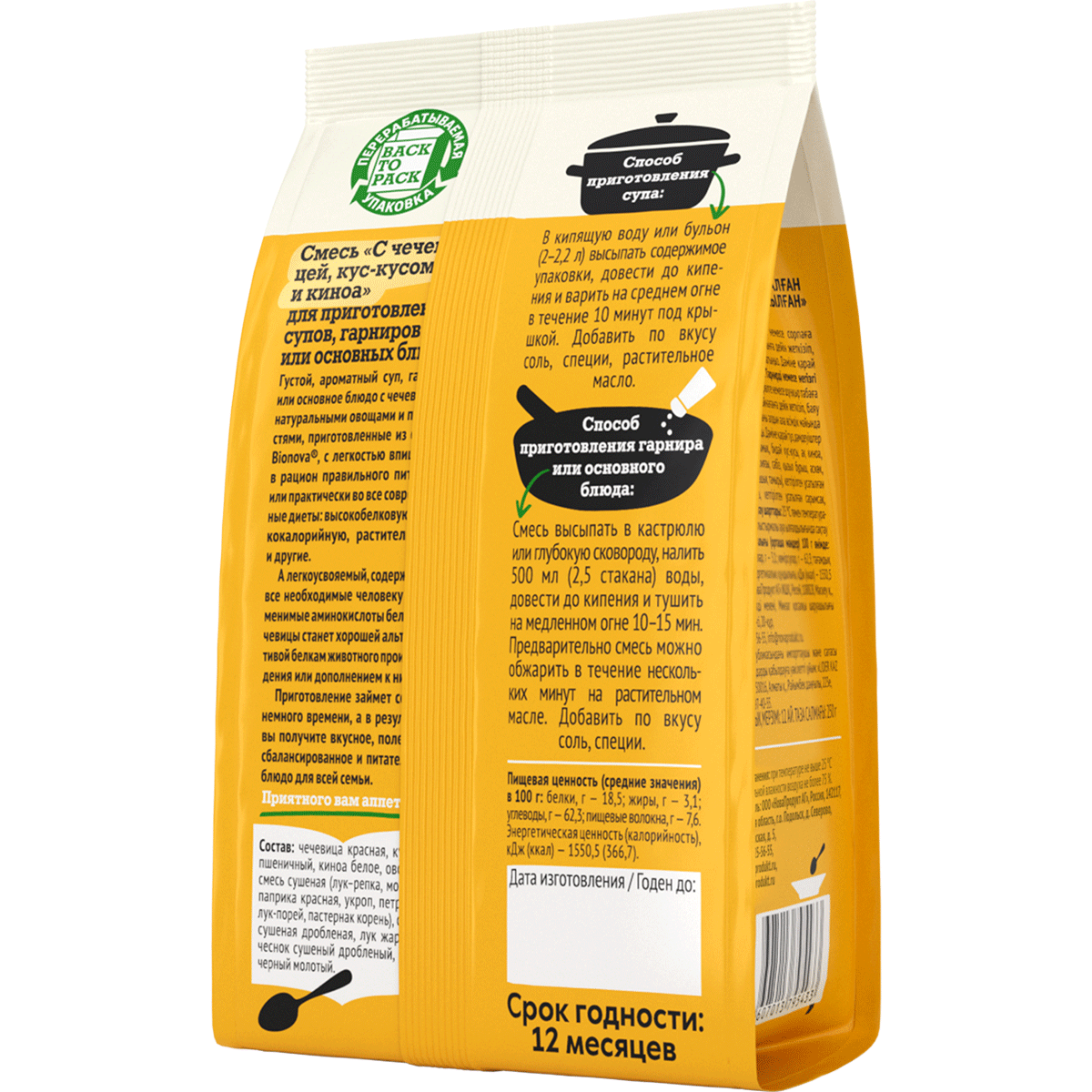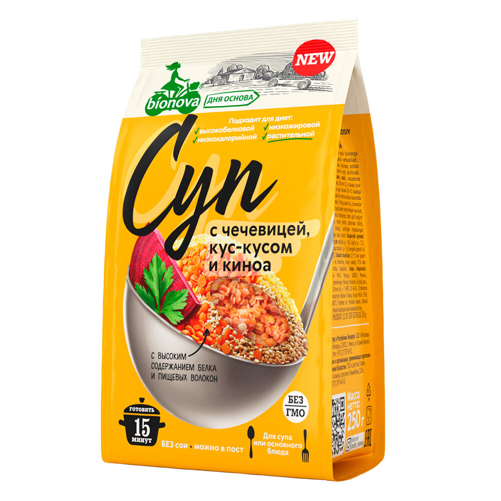 BIONOVA Смесь для Приготовления Супов, Гарниров с Чечевицей, Кус-Кусом и Киноа 250 гр информация: