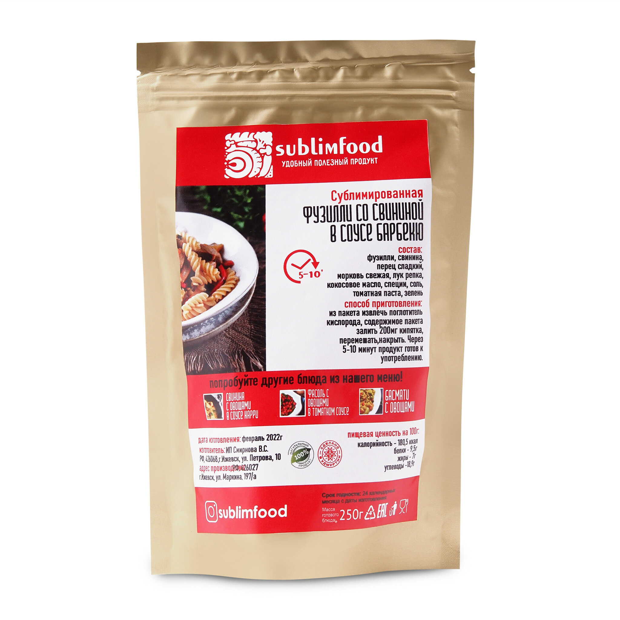 Фузилли со свининой в соусе барбекю сублимированные Sublimfood 50г информация: